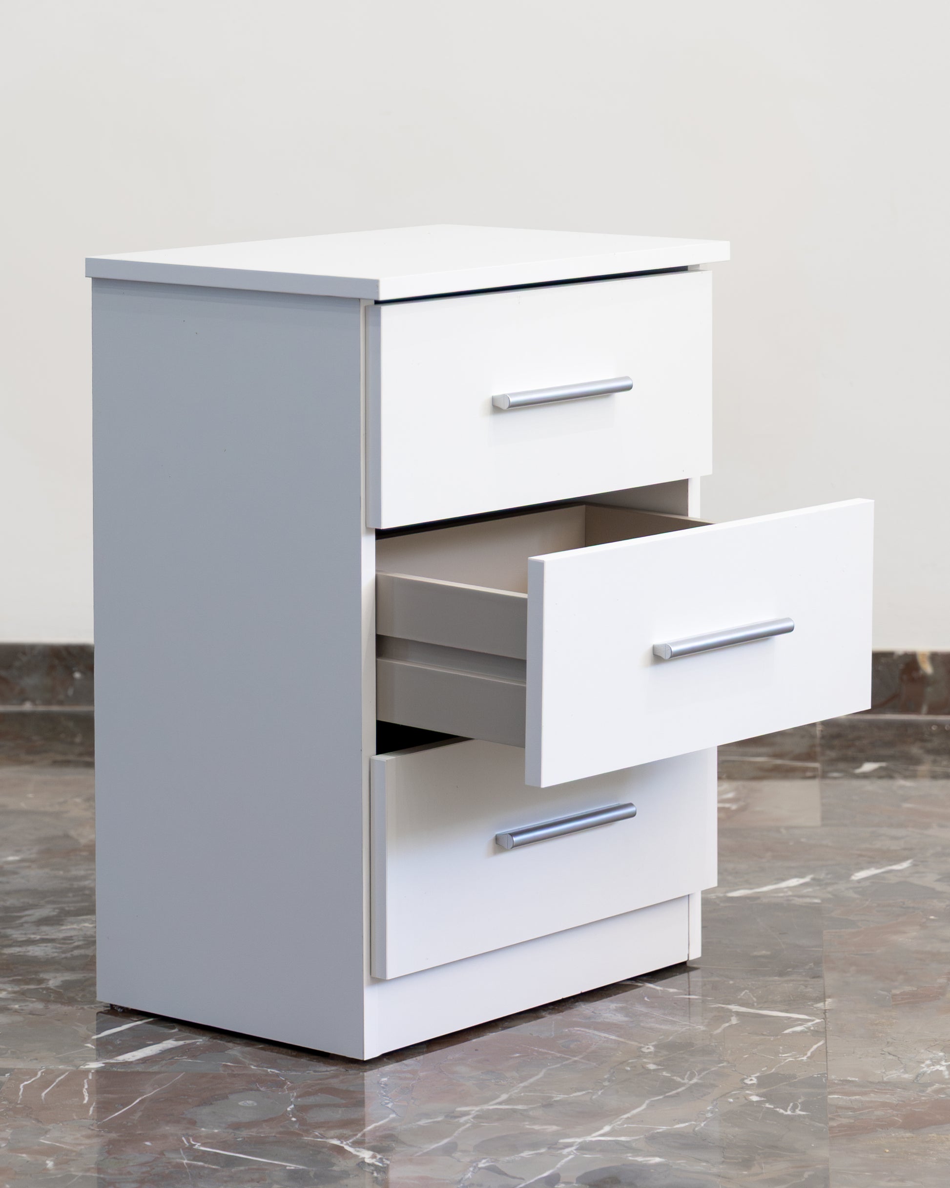 Amplitud y calidez en un diseño que nunca pasa de moda. Esta mesita con tres cajones combina practicidad y un aire tradicional que aporta ese toque acogedor a tu dormitorio. Ideal para guardar todo lo que quieres tener a mano y mantener el orden con estilo.