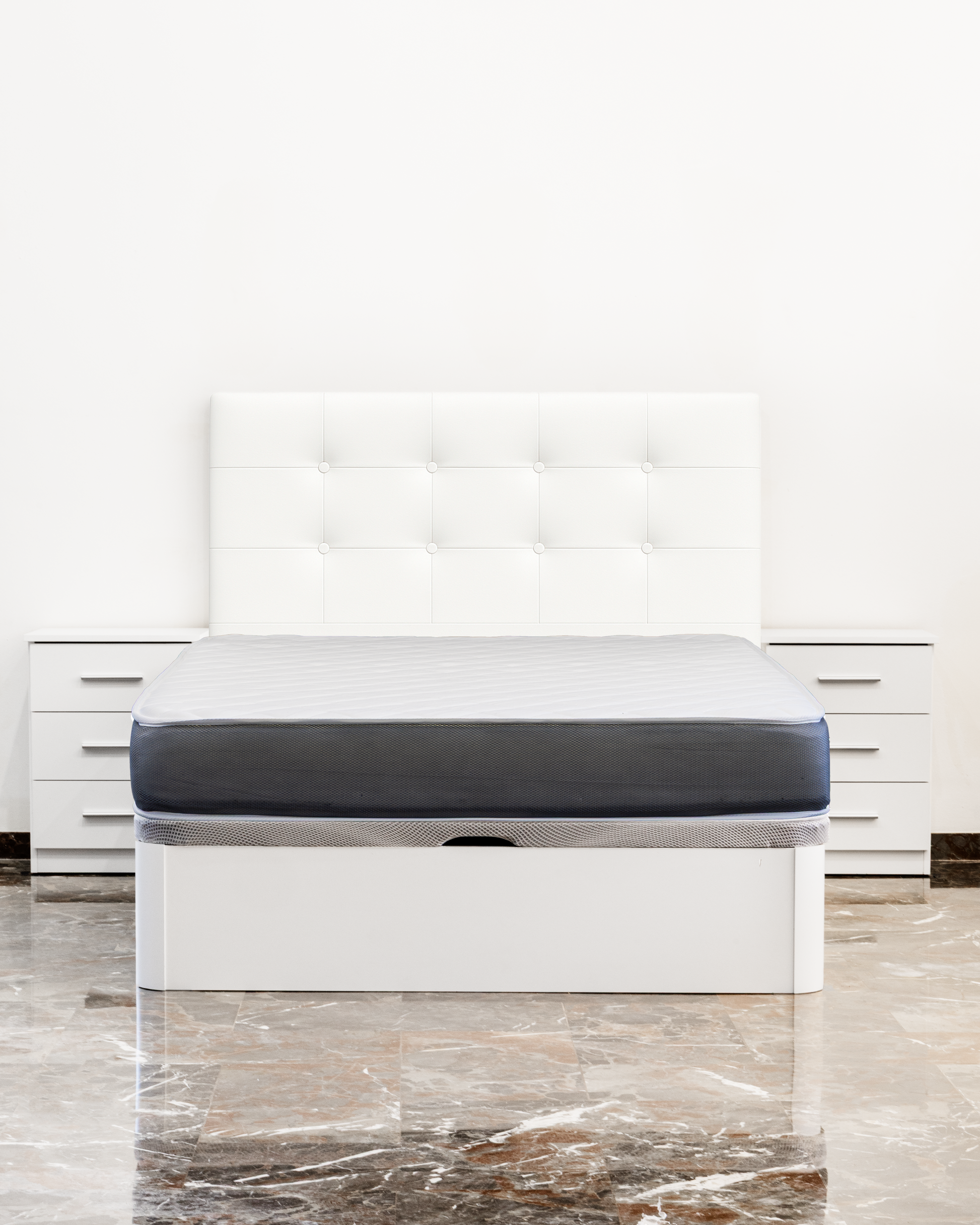 Nota: Las mesitas de noche y el cabezal que aparecen en las imágenes son elementos decorativos y se venden por separado.